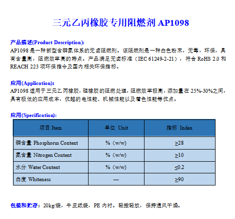 三元乙丙橡膠專用阻燃劑AP1098 2022-4-18 本文被閱讀 2968 次
